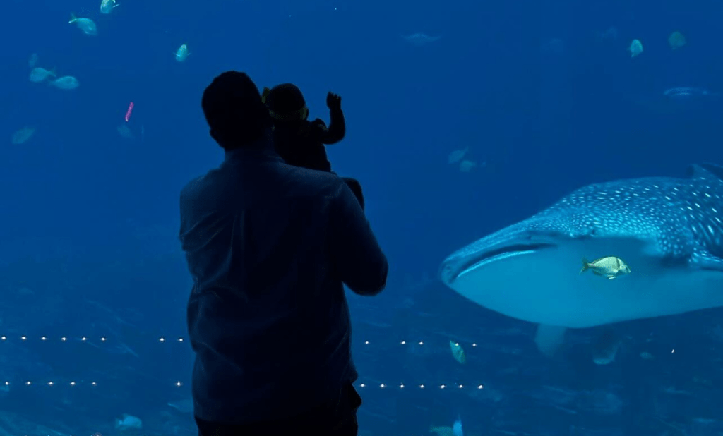 “We visited the Georgia Aquarium in Atlanta to see the whale sharks. Our daughter just started showing interest in fish at home so it was awesome to see her get excited about all the sea creatures.”