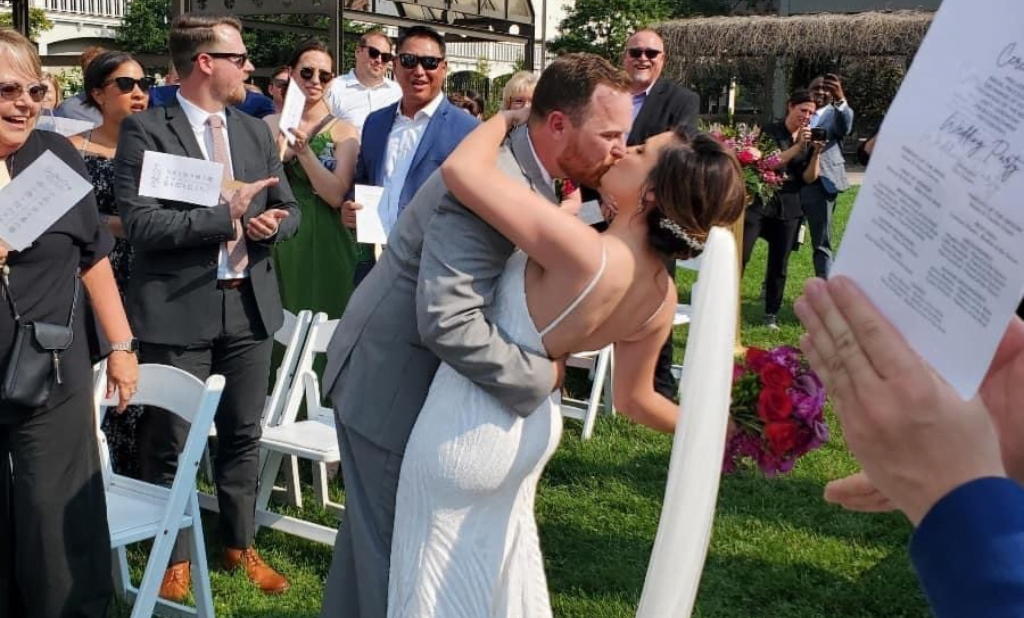 “I married the wonderful Christie Battista after dating for five years. I can’t really put into words in a couple sentences how awesome the weekend was! We had our rehearsal dinner on the CQ Princess yacht and sailed down the Ohio River toward the city for an awesome view! Our ceremony was in Belvedere Park in downtown Louisville with the reception in the Archibald Cochran Ballroom at The Galt House. It was genuinely perfect.
